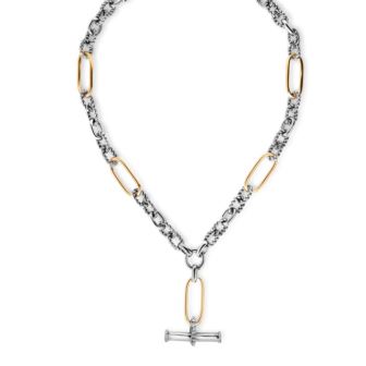 Bold yet refined, this Sterling Silver & 18K Gold T-Bar Necklace exudes Italian elegance. At 17", it showcases alternating yellow gold and sterling silver cable links, each expertly crafted for a look that's both vintage-inspired and refreshingly modern. The T-bar drop adds a striking focal point, while the lobster clasp ensures secure wear. It's the kind of piece that transforms the everyday into something extraordinary-your new signature statement.