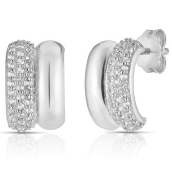 Get the look of two piercings in one. These sterling silver double half huggies combine one plain mini huggie with one white topaz pave design to create a simple ear stack. Style with everyday studs or let them shine on their own. Secured to the ears with pushbacks. Matches with necklace JN3013-W."