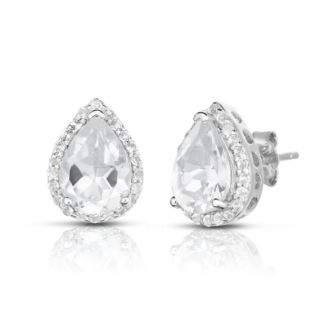 Romance with iconic style--fit for a queen. Beautiful pear-shaped white Topaz earrings accented by the brilliance of white sapphire, set in sterling silver.