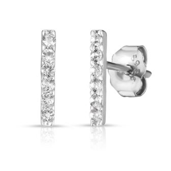 These mini white topaz bar earrings will be your everyday go-to pair, with just the right amount of delicate sparkle. Crafted in sterling silver and featuring petite pavé-set round brilliant-cut white topaz secured to the ears with pushback closures. Sterling Silver, White Topaz,11mm length