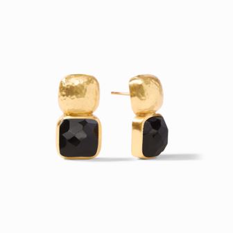 The stacked squares of these earrings-a lightly hammered top above the cushion shape gemstone underneath-comes in a spectrum of sparkling colors. 24K gold plate. 1 inch length