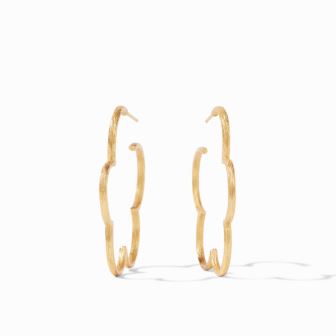Experience the whimsical beauty of romance with the Gardenia Textured Hoop Earrings-a delicate fusion of nature's elegance and timeless allure. Crafted with a slender hoop adorned with a golden etched finish, these earrings exude a subtle charm that captivates the heart. The floral silhouette adds a playful spin, reminiscent of a blossoming garden in the early morning light. With each gentle sway, these hoops whisper tales of love and enchantment, illuminating every moment with their radiant presence. Embrace the romance of the Gardenia Textured Hoop Earrings and let your love bloom like never before. 24K gold plate. 1.75" L. Golden Etched Finish.