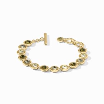 24K gold plate with crystal. Adjustable length: 6.5" - 7.5". Multi-colored jade crystals. Toggle closure. Julie Vos hallmark.