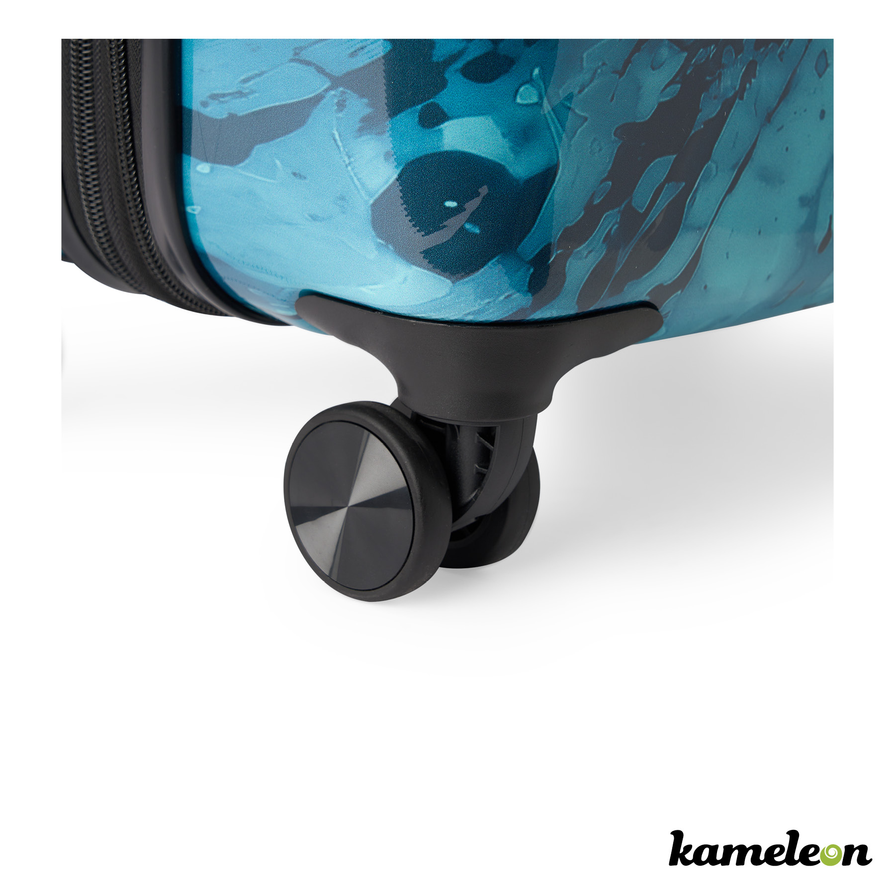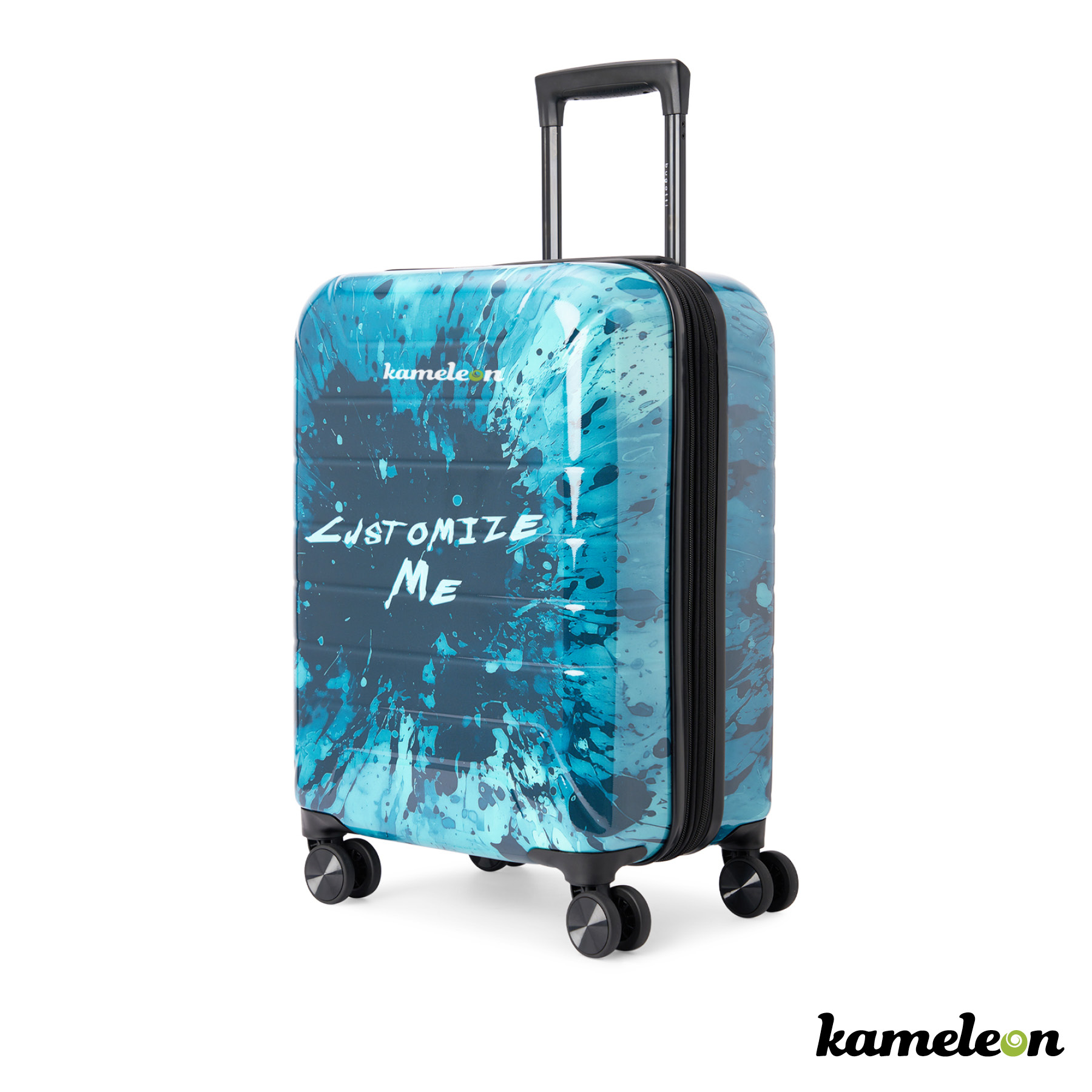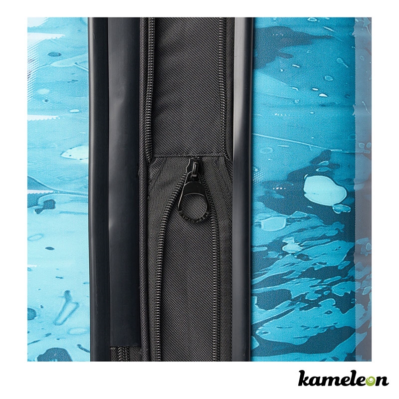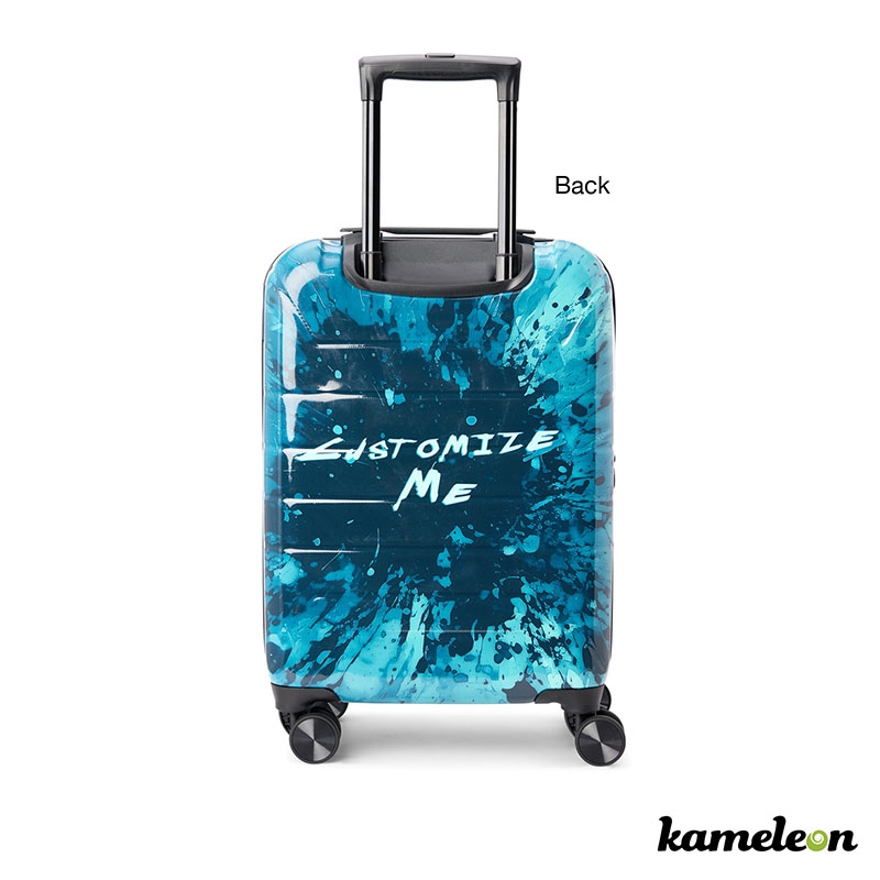 Crafted for the modern traveler, the Kameleon Customizable Carry-On Suitcase features a lightweight, yet durable inner shell made of ABS and an outer shell constructed from recycled PET (RPET). Effortless navigation is ensured with its four 360-degree spinner wheels, while the zipper-release expansion system provides an additional 20% in packing space. The telescopic trolley handle offers multi-stage locking heights, complemented by a reinforced top handle for easy lifting. Inside, a lined interior with a dividing panel, practical pockets, and compression straps help to keep your belongings organized and the TSA approved lock will keep them secured. Utilizing Kameleon patented in-mold decoration, get your message across by adding your full color design to each side of this 21.25 x 14.25 x 9.5-inch travel companion. Travel smart, travel in style. Limited 2-Year Warranty.