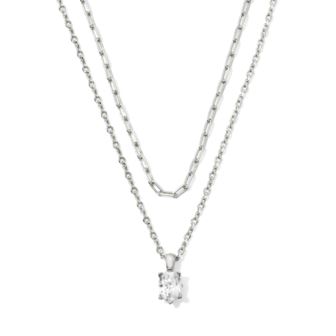 Gift them a timeless pendant that adds a personal meaning to their jewelry collection. The Cailin Silver Multi Strand Pendant Necklace in White Crystal! 16" 17" Chains with 4" Extender. 0.4"L X 0.18"W Pendant. White Crystal. Rhodium Over Brass. Closure: Lobster Clasp w/ Single Adjustable Slider Bead.