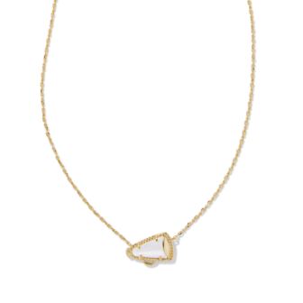 Give me a K! Give me an S! Give me a Cheer Gold Short Pendant Necklace in White Mother-of-Pearl! Minimal but full of cheer, this adorable megaphone pendant is framed by our signature hoof print detailing for that special KS touch. Stack up some extra spirit and pair this pendant with styles in your team's colors. 19" Chain, 0.48"L X 0.63" W pendant