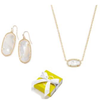 This classic Kendra Scott set includes the Elisa Necklace in Gold with Ivory Mother of Pearl along with the stunning Elle Drop Earrings in the same, beautiful combination. Comes ready to gift in a stylish box