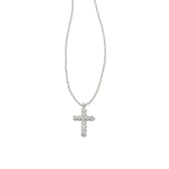 A delicate symbol with subtle shine, the Cross Silver Pendant Necklace in White Crystal is a meaningful reminder of what matters to you most. Rhodium Over Brass. Lobster Clasp With Single Adjustable Slider Bead. 19" Chain, 0.5"L X 0.83"W Pendant.