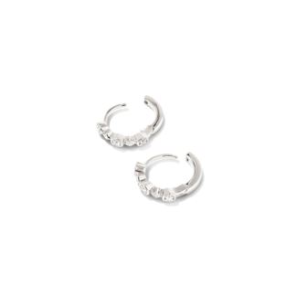 Proof that the best things come in threes. The Davie Sterling Silver Trio Huggie Earrings in White Sapphire feature a timeless Huggie hoop adorned with a row of stacked stones. Minimalist in design but maximalist in shine, these earrings are a match for everyday styling or your next event look. 0.49" Outside Diameter.