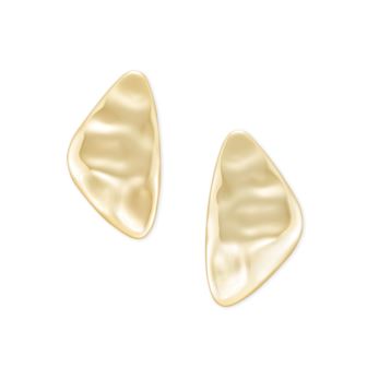 This charming looking blend of the modern and the organic, the Kira Statement Earrings in Vintage Gold Metal feature a custom shape inspired by a pebble found on the beach with beautifully hammered metal. Materials: 14K Gold Brass Plated, Item Dimension: 2"l x 1"w on ear post.