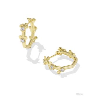 These huggies are a must-have for any Disney fan! Meet the Disney - Kendra Scott Gold Mickey Mouse and Minnie Mouse Huggie Earrings in White CZ. Featuring a scaled-down huggie silhouette inspired by our signature shape, Disney's eternal sweethearts shine in crystal-studded iterations along these adorable earrings. With their playful and stylish look, these huggies are the perfect finishing touch for any outfit. Metal14k Yellow Gold Over Brass. Size: 0.69"L X 0.22"W.