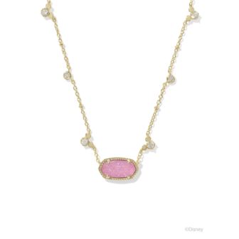 Experience the feeling of everyday magic with the Disney - Kendra Scott Gold Mickey Mouse Short Pendant Necklace in Hot Pink Drusy. Our signature pendant topped with Disney Mickey Mouse ears gets an extra dose of dazzle with a crystal-studded satellite chain. Timeless, iconic, and full of joy, this precious pendant will sprinkle a bit of extraordinary into your everyday looks. Metal: 14k Yellow Gold Over Brass. Size: 14" Chain With 5" Extension. 0.76"L X 0.53"W Pendant.
