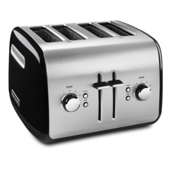 An attractive and functional addition to any countertop, the KitchenAid 4-Slice Toaster offers a variety of functions for everyday use. Toast bread to your desired shade, precisely toast the cut sides of bagels, defrost and toast frozen food or reheat previously toasted food in under a minute. Plus, a high lift lever makes it easy to remove whatever you're toasting.