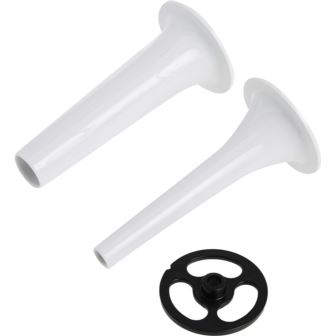 Impress your gameday guests with homemade bratwursts made with this KitchenAid sausage stuffer kit. This kit includes two different-sized stuffing tubes and is compatible with the KitchenAid food grinder and stand mixer (not included). Take control of what's in your food, and use your own blend of meats, spices, and seasonings to prepare from-scratch Italian sausage, Polish kielbasa, or breakfast links. Simply toss this KitchenAid sausage stuffer kit in the dishwasher for easy cleanup.