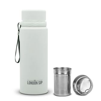 The London Sip Infuser Bottle allows you to enjoy tea and fruit infused water anywhere your adventures take you. Simply add loose leaf tea, coffee, or fruit to the uniquely designed two piece infuser system, add water, and head out. The 25oz capacity is an ideal size for any outdoor outing and is easily carried thanks to the nylon carry strap. Constructed of durable and corrosion resistant stainless steel, the dual walled construction will keep your cold drinks cold and your hot drinks hot.