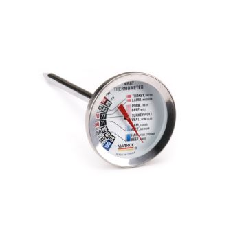 Cook with confidence using the Maverick Gourmet Roasting Thermometer. Designed to stay in meat throughout cooking, it provides accurate results with a 130°F–190°F (54°C–88°C) range. Durable stainless steel, an easy-to-read dial, and shatterproof lens ensure clear, lasting performance. Target temperatures for beef, poultry, pork, veal, and ham are printed on the dial for perfect results every time.