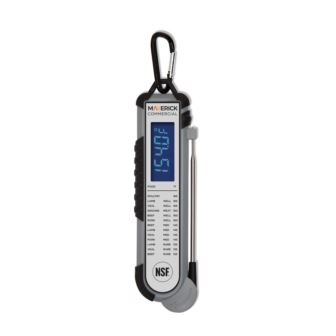 The Maverick Pro-Temp Professional Thermocouple Thermometer delivers precise, reliable readings for chefs and home cooks. Its Type K micro-tip probe reads ±0.7°F accurately, while the backlit LCD with large digits ensures easy viewing. Water-, dust-, and shock-resistant, NSF certified, and featuring a built-in meat chart, it measures -40°F to 662°F with 0.1° accuracy and includes a NIST-calibrated certificate for professional-grade performance.