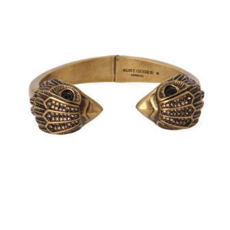 Statement hinged bangle bracelet featuring signature eagle heads at either end adorned with subtle stone accents. Bracelet has an easy hinge closure. Includes Kurt Geiger London pouch.