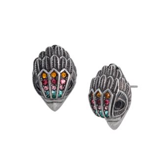 Signature eagle head motif stud earrings adorned with subtle multi-colored stone accents. Earrings have a post back closure. Includes signature Kurt Geiger London jewelry pouch.