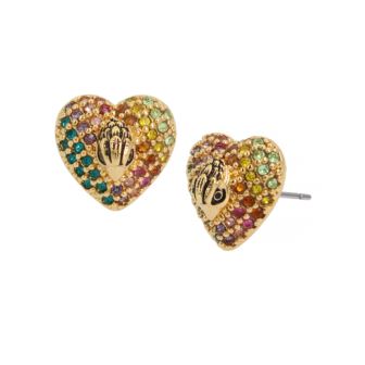 Everyday heart stud earrings adorned with vibrant rainbow pave and minimal signature eagle head motif at center. Earrings have a post back closure. Includes signature Kurt Geiger London jewelry pouch.
