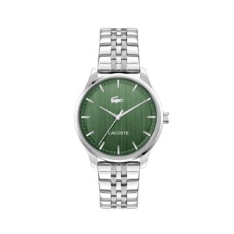 Lacoste Replay Gents Watch. 43MM Stainless Steel case. Green Dial. Stainless Steel Bracelet with deployment buckle . Mineral Crystal. Water resistant to 5 ATM. Quartz Movement