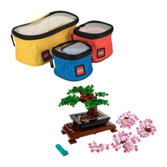 Keep Lego bricks and pieces tidy and easily accessible with this set of 3 organizer cubes. In 3 different sizes, the cubes are just right for sorting or transporting Lego parts or small builds. Practical touches include a clear window, making it easy to see what's inside, plus a zipper closure to keep everything safe. When not in use, the blue and red cubes fit inside the yellow cube for easy storage. To get your collection started this Kit includes the Lego Botanical Bonsai Tree.