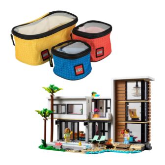 Keep Lego bricks and pieces tidy and easily accessible with this set of 3 organizer cubes. In 3 different sizes, the cubes are just right for sorting or transporting Lego parts or small builds. Practical touches include a clear window, making it easy to see what's inside, plus a zipper closure to keep everything safe. When not in use, the blue and red cubes fit inside the yellow cube for easy storage. To get your collection started this Kit includes the Lego Modern House.