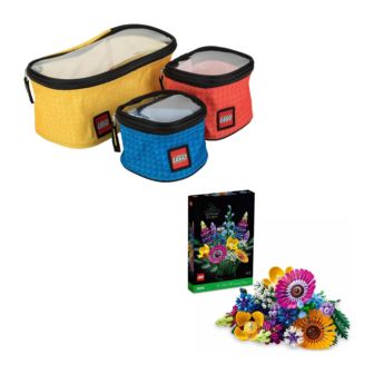 Keep Lego bricks and pieces tidy and easily accessible with this set of 3 organizer cubes. In 3 different sizes, the cubes are just right for sorting or transporting Lego parts or small builds. Practical touches include a clear window, making it easy to see what's inside, plus a zipper closure to keep everything safe. When not in use, the blue and red cubes fit inside the yellow cube for easy storage. To get your collection started this Kit includes the Lego Botanical Wildflower Bouquet.