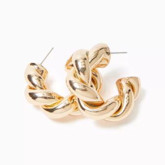 Add a new everyday essential to your jewelry box with these gold twist hoops. Gold twisted hoop earrings. Measures 1 1/4"D. Gold Metal.