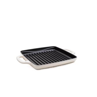 The USA Enamel Grill Pan, featuring a black satin interior, raised grill lines, dual handles, and a vibrant exterior, is perfect for grilling everything from halloumi skewers to street tacos. Its 11-inch square design combines modern style with classic grill pan functionality. No seasoning required, rust-free, and easy to clean. Compatible with gas, glass, and induction stovetops, it's oven-safe and table-ready. Made in America, this pan is crafted to last for generations.