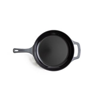 The USA Enamel Skillet, with a black satin interior, primary handle, and vibrant exterior, is perfect for dishes from shakshuka to lemony linguine. Its 11-inch design combines the American-made USA Enamel collection's style with the performance of cast iron. Enameled for no seasoning and rust-free use, it handles acidic foods with ease. Marinate in the fridge, use on gas, glass, or induction stovetops, bake in the oven, and serve right at the table. Made in America to last generations.