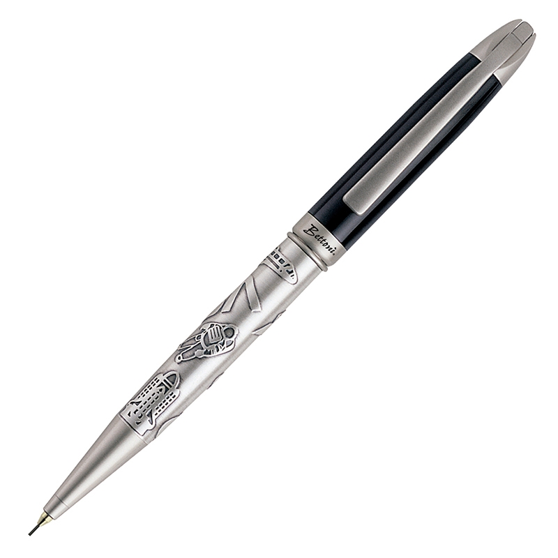 Create your own barrel design. Spring loaded clip, twist-action mechanism, 0.5mm lead, alternative cap colors, includes a velour pouch, mold size "c".