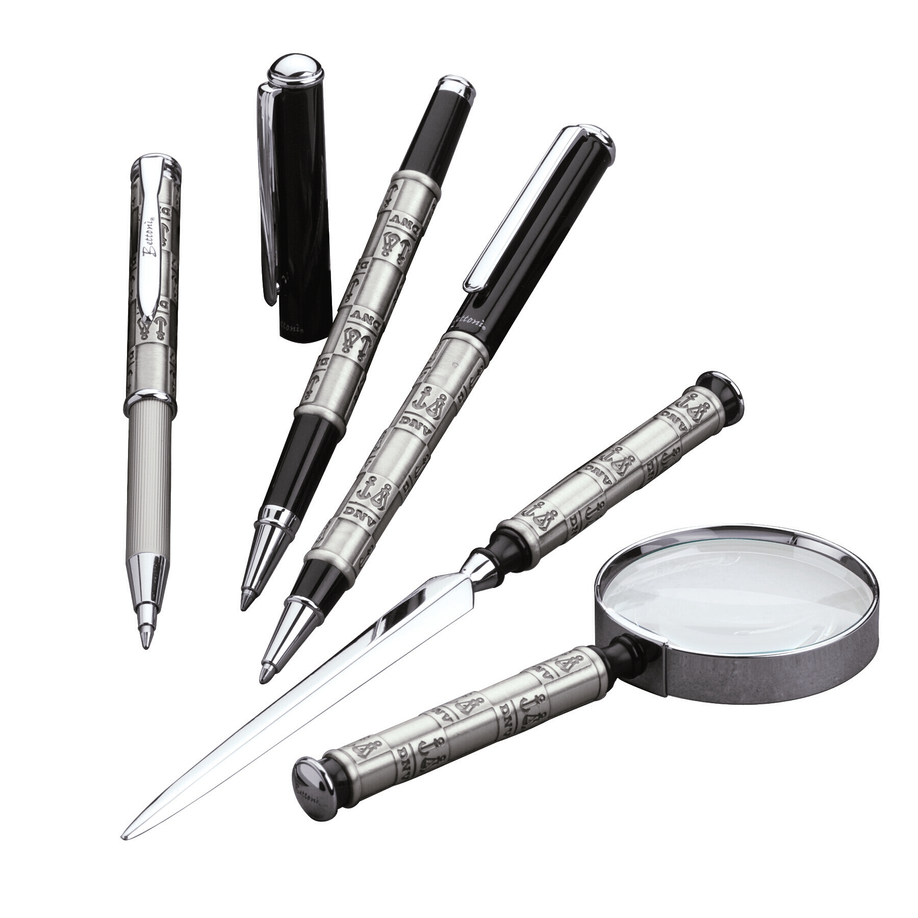 Telescoping ballpoint etched barrel and antique sculptured cap extends from 3 1/2" to 4 9/16".