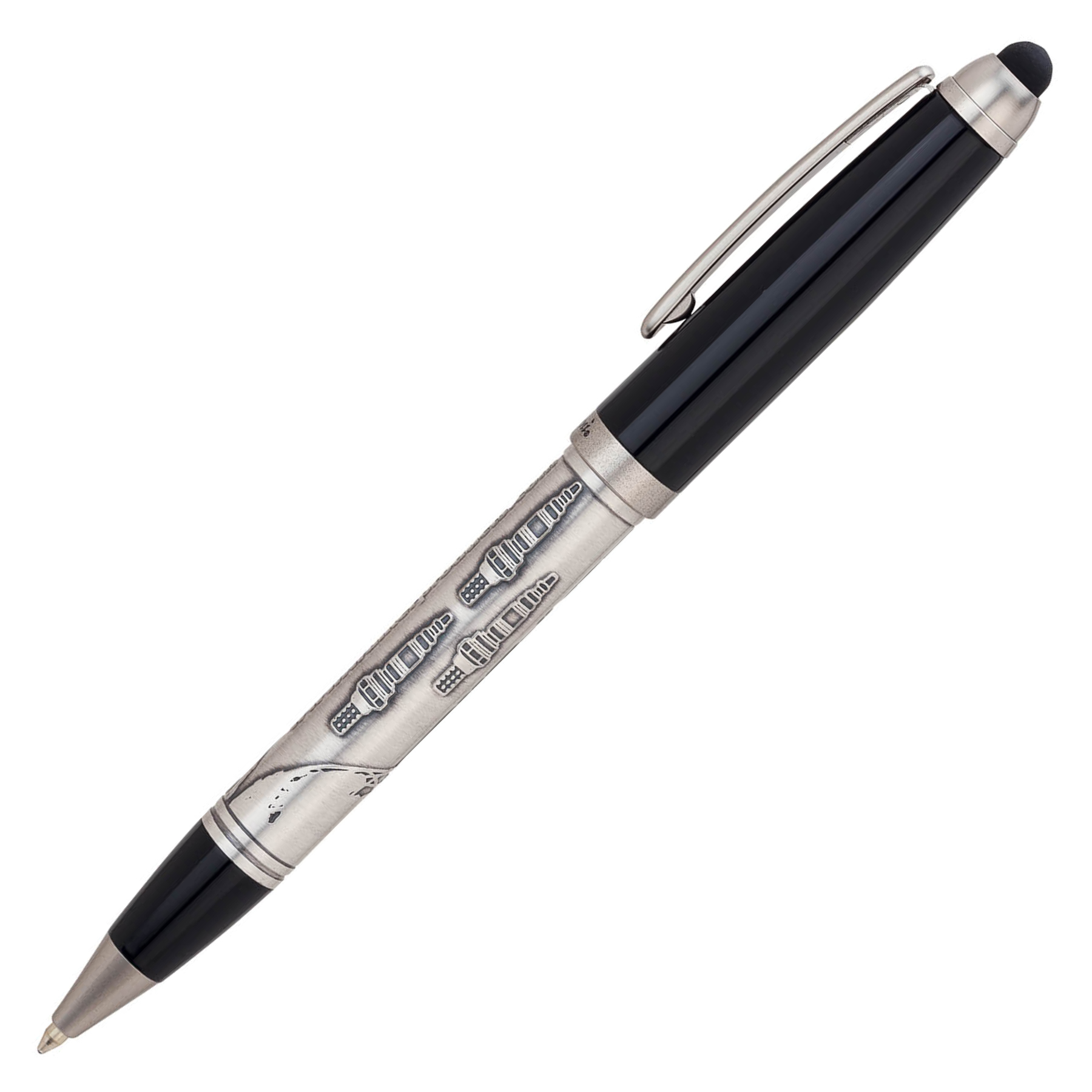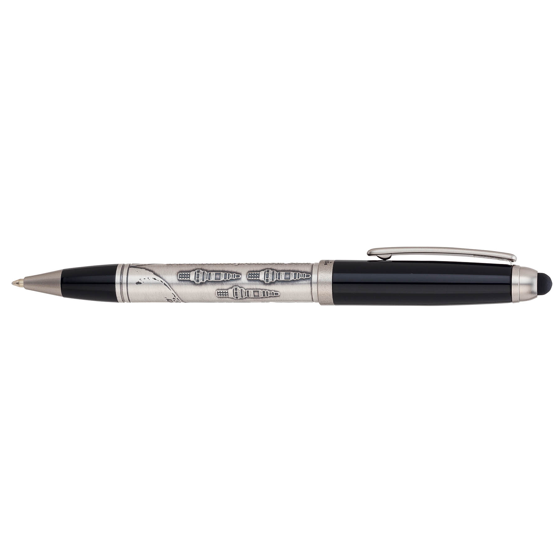 This elegant pen features a custom-molded barrel, twist-action mechanism, USA made ballpoint refill, capacitive stylus that works with touch screen devices, and a two-piece triangular gift box.