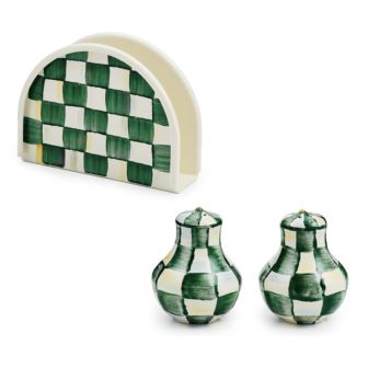 MacKenzie Childs - Emerald Check Napkin Holder & Shaker Set