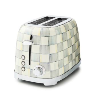 Add a touch of subtle sophistication to your mornings with the MacKenzie-Childs Sterling Check 2-Slice Toaster. Crafted from stainless steel and hand-painted in soft gray-blue Sterling Checks, this appliance transforms a kitchen essential into a countertop statement. With six browning levels, you have full control over your toast-from lightly golden to crisp perfection. The backlit chrome knob offers four functions: Defrost, Cancel, Bagel, and Reheat. Self-centering racks keep slices upright for even results every time. Measuring 10.5 inches deep, 6.5 inches wide, and 7.5 inches tall, and weighing approximately 2.64 pounds, its compact, functional, and eye-catching. Handmade and imported, no two are exactly alike-each piece adds a dash of personality to your kitchen routine.