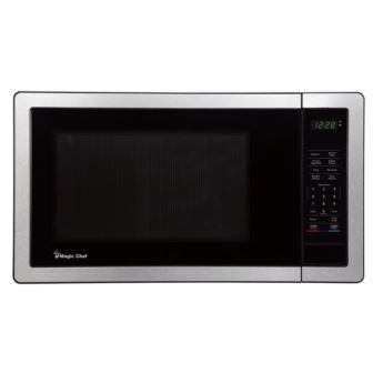 Magic Chef 1.1-cu. ft. digital microwave combines style and efficiency in one product. With 10 power settings and 6 pre-programmed one-touch menu settings, it makes cooking easier, simpler, and faster. This stainless steel microwave is designed with electronic controls and LED displays. It can comfortably fit a full-size dinner plate. Additional features of the 1000-watt oven: 30-second express cooking, weight defrost, and time defrost. It also has a child safety lock. This Magic Chef microwave oven adds functionality and convenience to your kitchen.