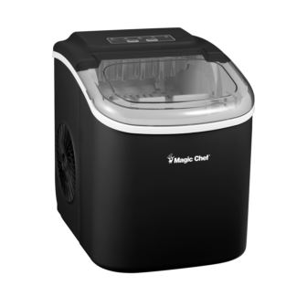 The Magic Chef Portable Countertop Ice Maker produces up to 27 lbs. of ice daily and stores 1.5 lbs. at a time. Perfect for parties, it makes two ice sizes in as little as 7 minutes. A digital panel alerts when the bin is full. Compact and easy to place on a kitchen counter or patio table, it's a fast, convenient solution for keeping drinks cold and guests happy.