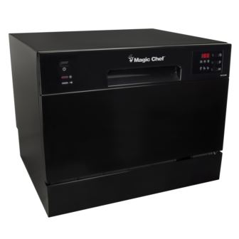 The Magic Chef Countertop Portable Dishwasher provides all the convenience of a full-size dishwasher for cleaning your dishes. It features enough space to accommodate 6-standard place settings, making it perfect for singles, couples, apartments or the office kitchen. With easy-to-use, push-button electronic controls, it is designed with a stainless steel interior that includes a durable rack, silverware basket and cup shelf for easy loading.