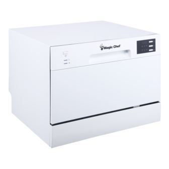 The Magic Chef Countertop Portable Dishwasher provides all the convenience of a full-size dishwasher for cleaning your dishes. It features enough space to accommodate 6-standard place settings, making it perfect for singles, couples, apartments or the office kitchen. With easy-to-use, push-button electronic controls, it is designed with a stainless steel interior that includes a durable rack, silverware basket and cup shelf for easy loading.