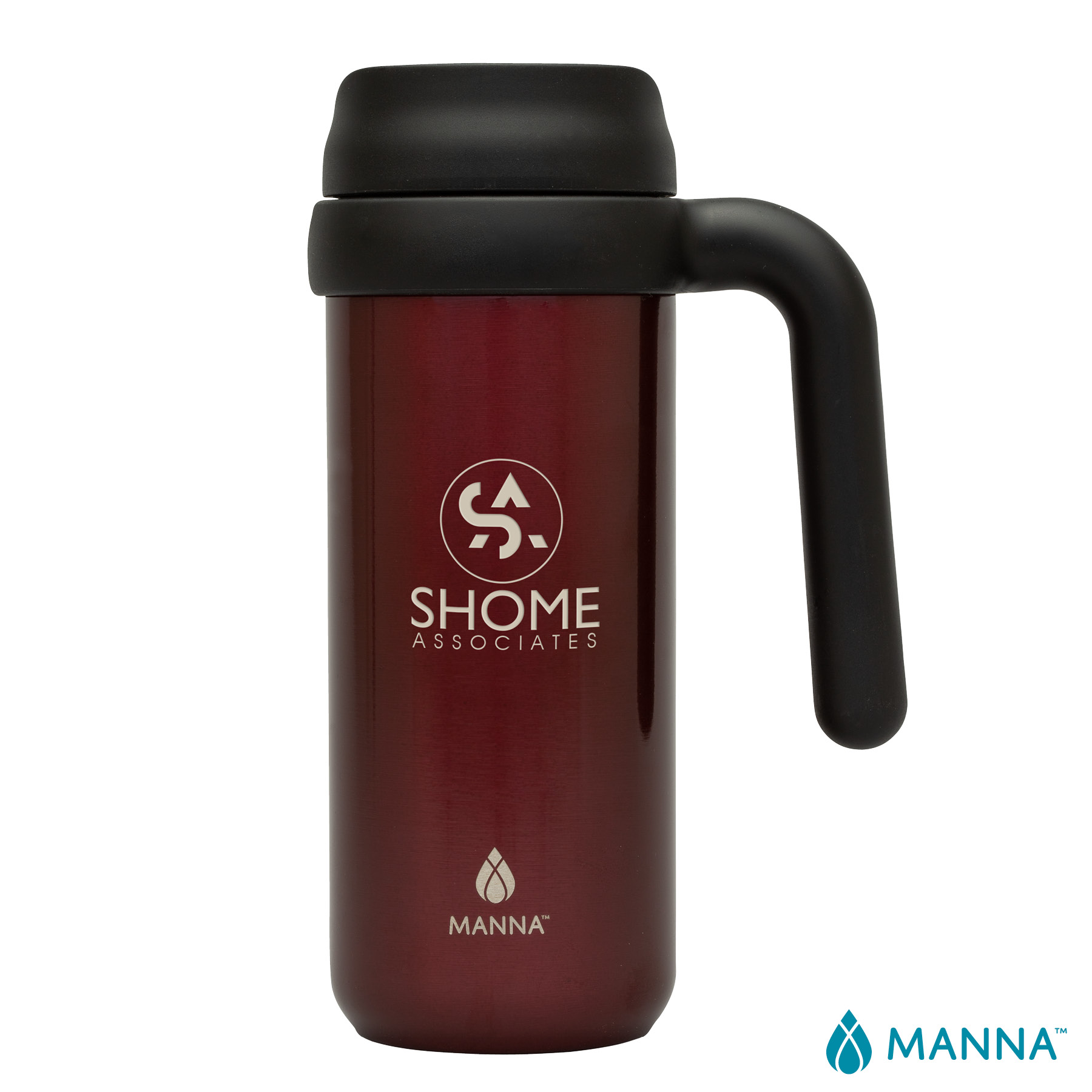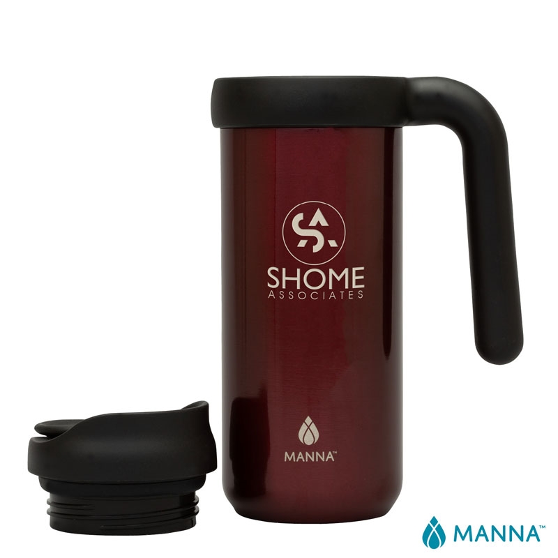 The Manna™ Mocha Mug 16 oz. tumbler is perfect for home or the office. Great for hot or cold drinks, it is double walled and vacuum sealed and will keep your iced drinks cold for 24 hours and your hot drinks hot for 6 hours. The unique single-hand operation sipper lid is patent pending and makes it easy to lock and prevent spills. The Mocha Mug is FDA compliant and BPA and lead free. Gift this mug to your new hires and business associates.