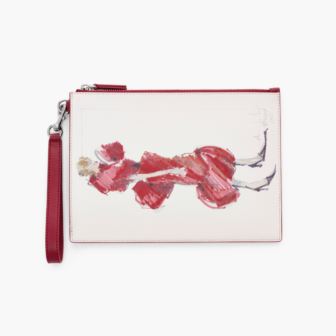 This smooth leather wristlet features colorful illustrations from the Spring 2025 runway collection by Marc himself. A top zip closure keeps everything safe. Easily store cards inside with three card slots. Use as a wallet or wear as a wristlet with a removable strap. Dimensions: 7.13" H x 0.98" W x 10" L