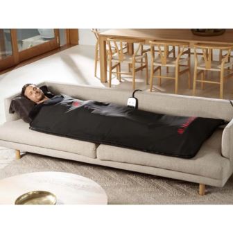 Get the benefits of an infrared sauna from the comfort of your home. Calm your mind and experience that post-sauna high.*Boost muscle recovery with deep penetrating infrared heat.*30-Day Risk-Free TrialTry your sauna with peace of mind. Material & SpecsType of Infrared: FAR infraredSize of Blanket: 180cm long, max height recommended is 196cmMaximum Weight Capacity: 150kgMaterials: Poly Oxford exterior, waterproof inside & non-toxic fabricsElectrical Certification: CE approvedWhat's included1x infrared sauna blanket1x controller1x sauna carry bag