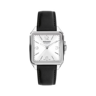 Movado Automatics - Heritage 1917 Automatic Gents. Stainless Steel Case. Black Leather Strap. Silver Dial.