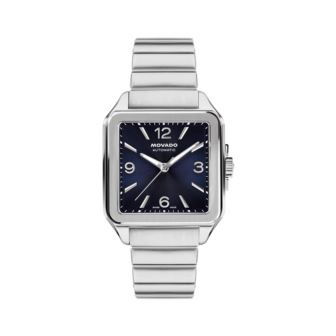 Movado Automatics - Heritage 1917 Automatic Gents. Stainless Steel Case & Bracelet. Vintage blue sunburst Dial.