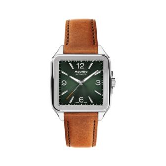 Movado Automatics - Heritage 1917 Automatic Gents. Stainless Steel Case. Cognac Leather Strap. Vintage green Dial.
