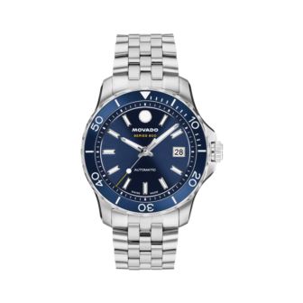 Movado Automatics - Series 800 Automatic. Stainless Steel case & Bracelet. Blue Aluminum bezel. Blue Dial
