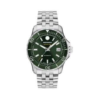 Movado Automatics - Series 800 Automatic. Stainless Steel case & Bracelet. Green Aluminum bezel. Green Dial