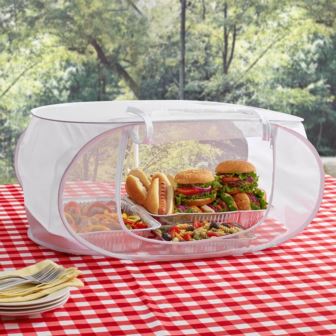 Keep insects off your barbecue or picnic guest list with the handy Tabletop Food Tent from Mr. Bar-B-Q. The Tabletop Food Tent is made of mesh so air can move through freely, letting your food stay fresh, not soggy. A zipper closure provides easy access. Great for picnics and tailgates, the Food Tent is light, portable, and neatly folds and stores away when not in use.