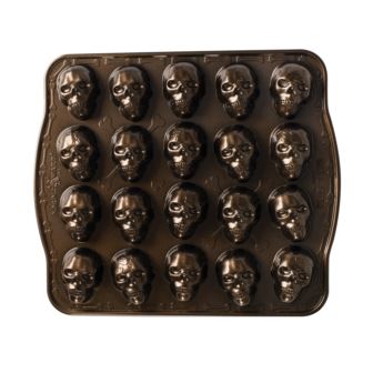 Bring spooky fun to your baking with the Nordic Ware Skull Bites Cakelet Pan! Take your favorite recipes and bake unique skull cakes that will be a hit during Halloween or anytime. Made from cast aluminum, this bakeware distributes heat evenly for perfectly shaped mini cakes every time. Create 20 little skulls all at once! With this pan, you'll be ready for any October get-together: whether it's a costume party or just some friends over for cards, you'll have everyone talking about your creative bakes!
